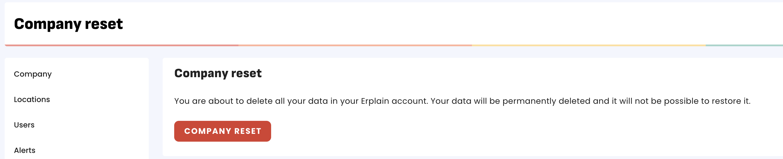 You can delete the data in your account by clicking on the "Delete my Data" button. You can use this to reset your account or delete the trial account information (sample). This option is only available for the account administrator.