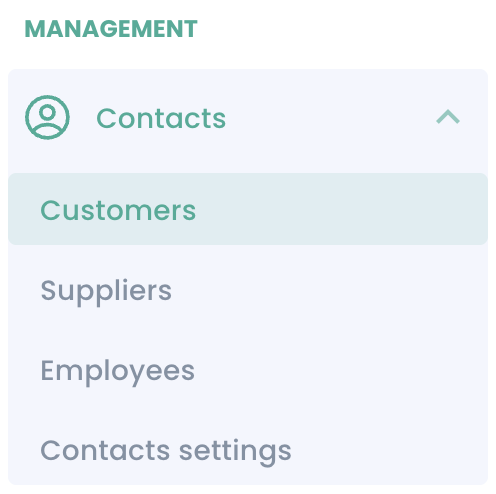 Your customer list will display when you open the menu 'Contacts' > 'Customers':