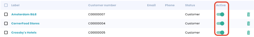 2. In the colum "ACTIVE", place your mouse on the contact you wish to enable or disable and click on the following button: