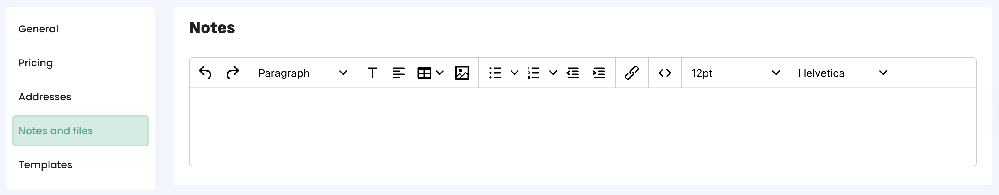 - Add Notes: These notes will not be displayed on any customer facing document.