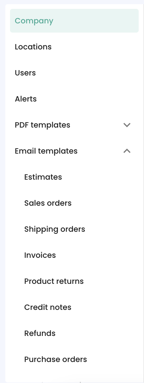 1. From the menu Settings > Email templates: