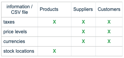 For more specific information about importing products, customers and suppliers, we invite you to read our articles on importing products, customers and suppliers.