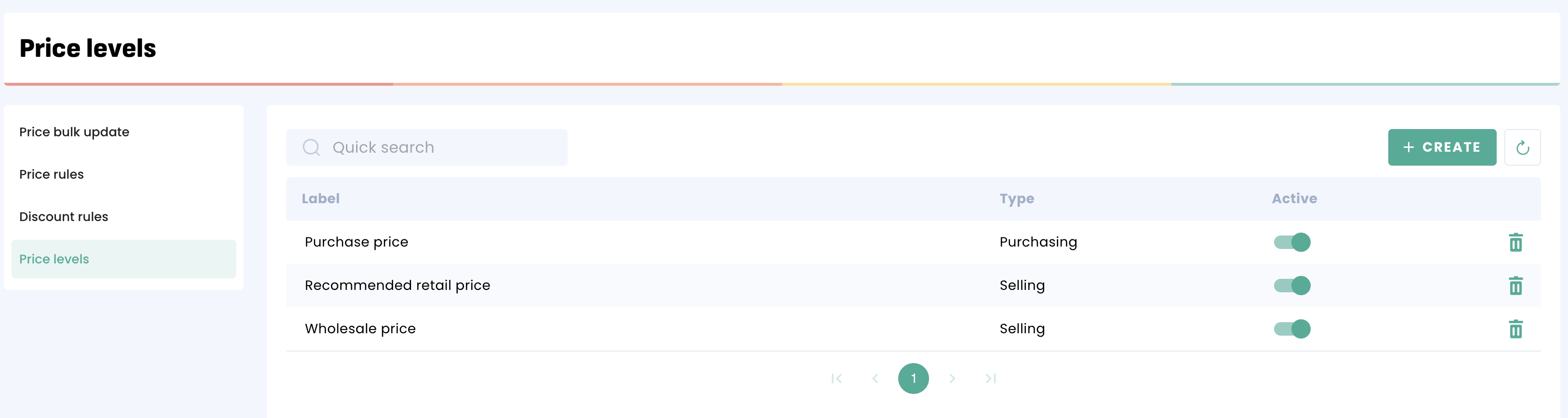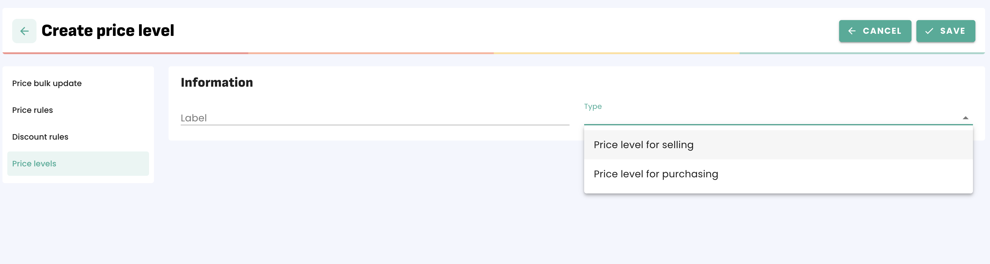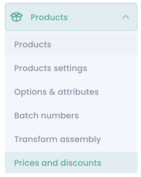 To create additional price levels, start by going to the menu Products > Prices and discounts > Price levels: