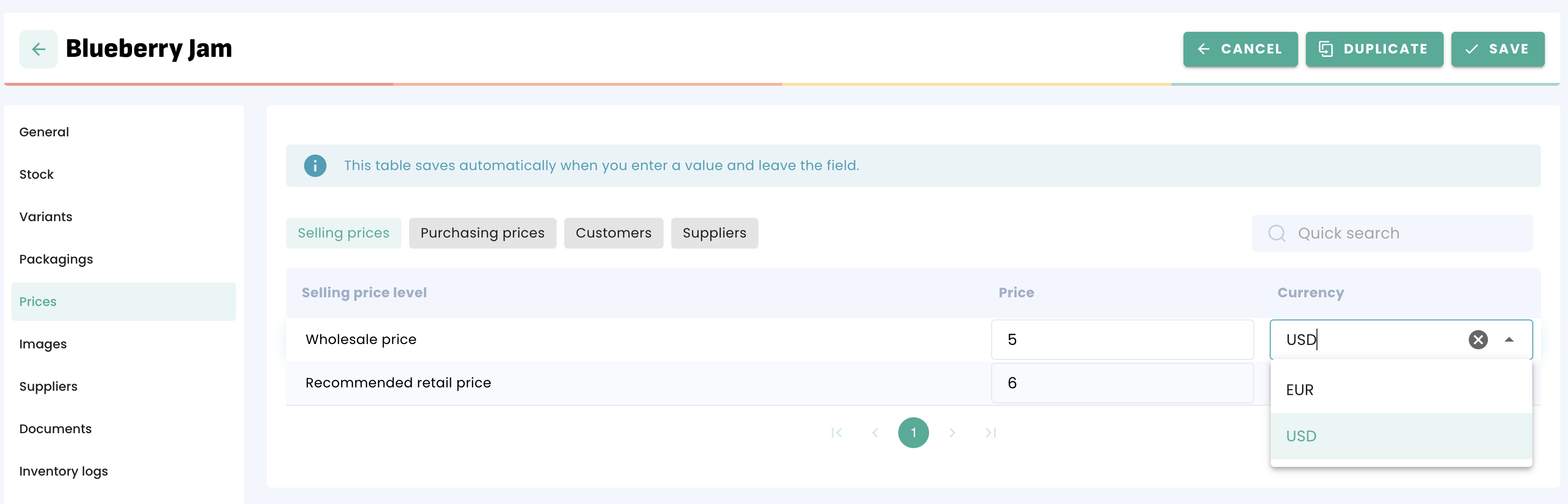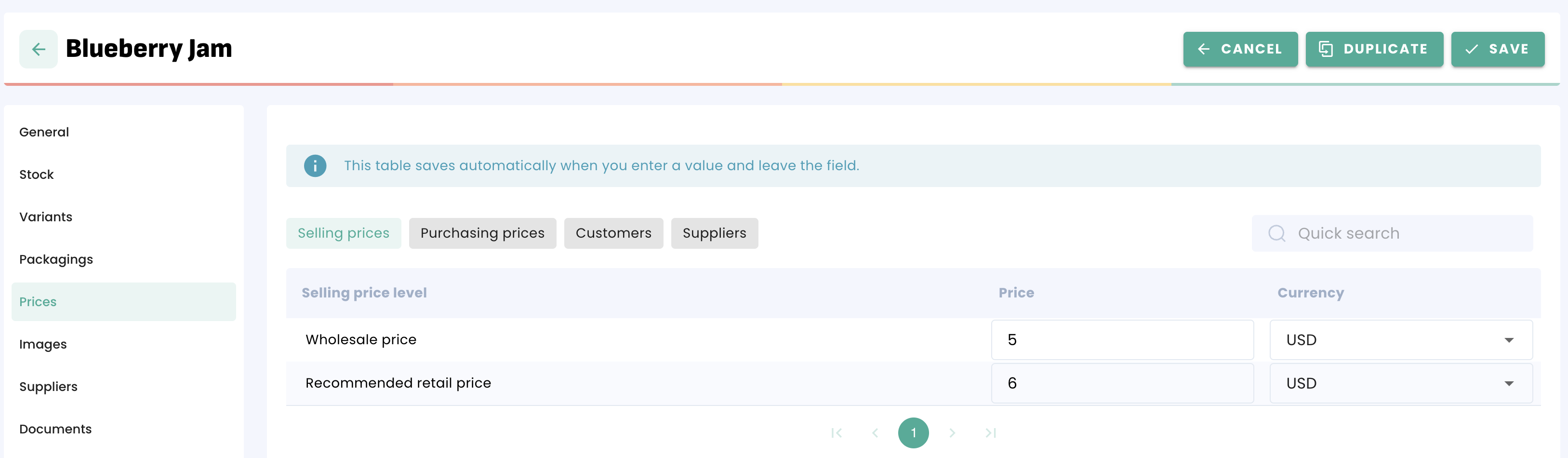 As you are creating a new product, you will be prompted for a purchase price, a wholesale price and a recommended retail price. This is done directly in the product creation form (or editing form).
