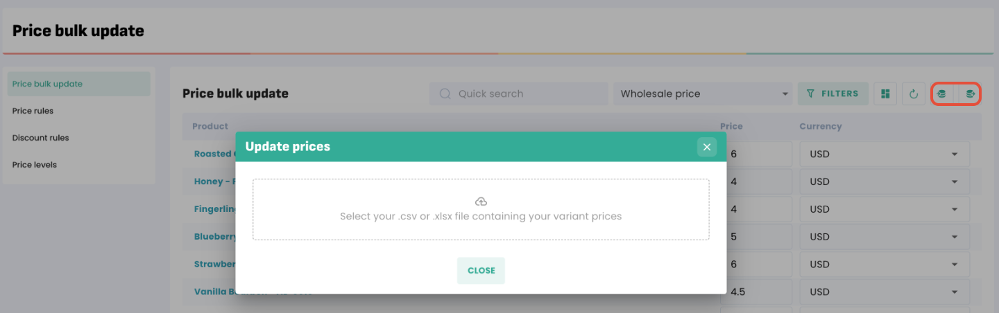 Importing prices for all price levels from a spreadsheet (CSV or XLSX file) is possible from the menu Settings > Import. You can find more information on this page: Updating data.