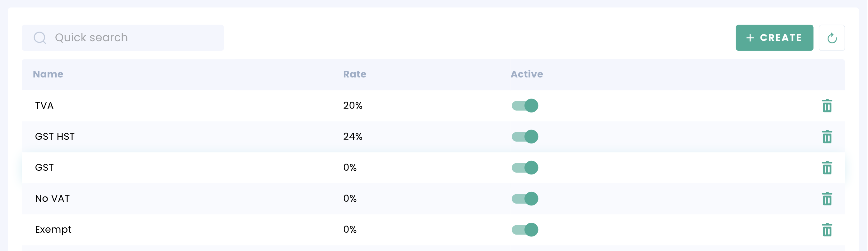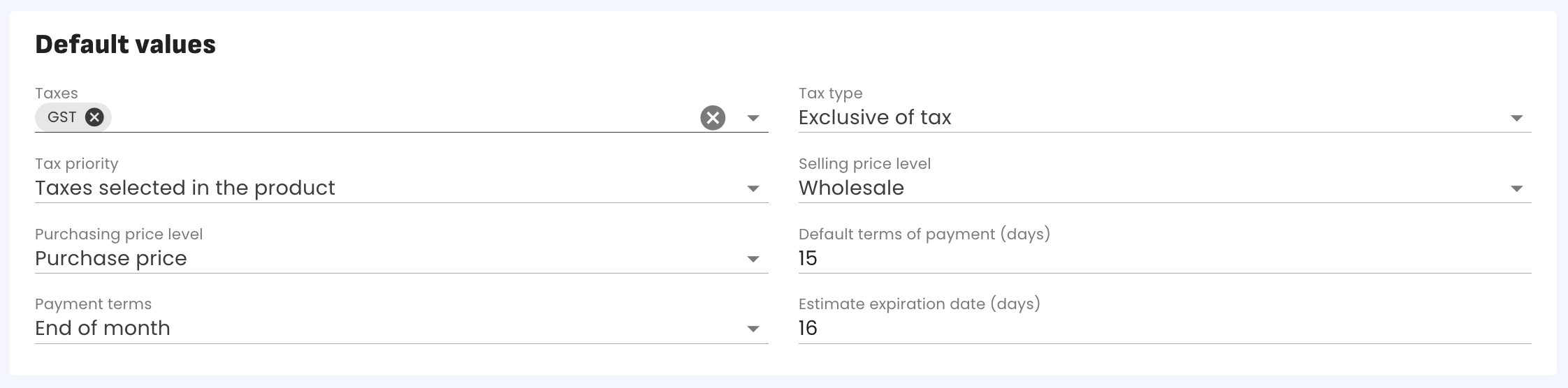 Changing default tax priorities: In the company settings, you can change the tax priorities between products and clients. If you choose "taxes selected in document", the priority order will be as follows: