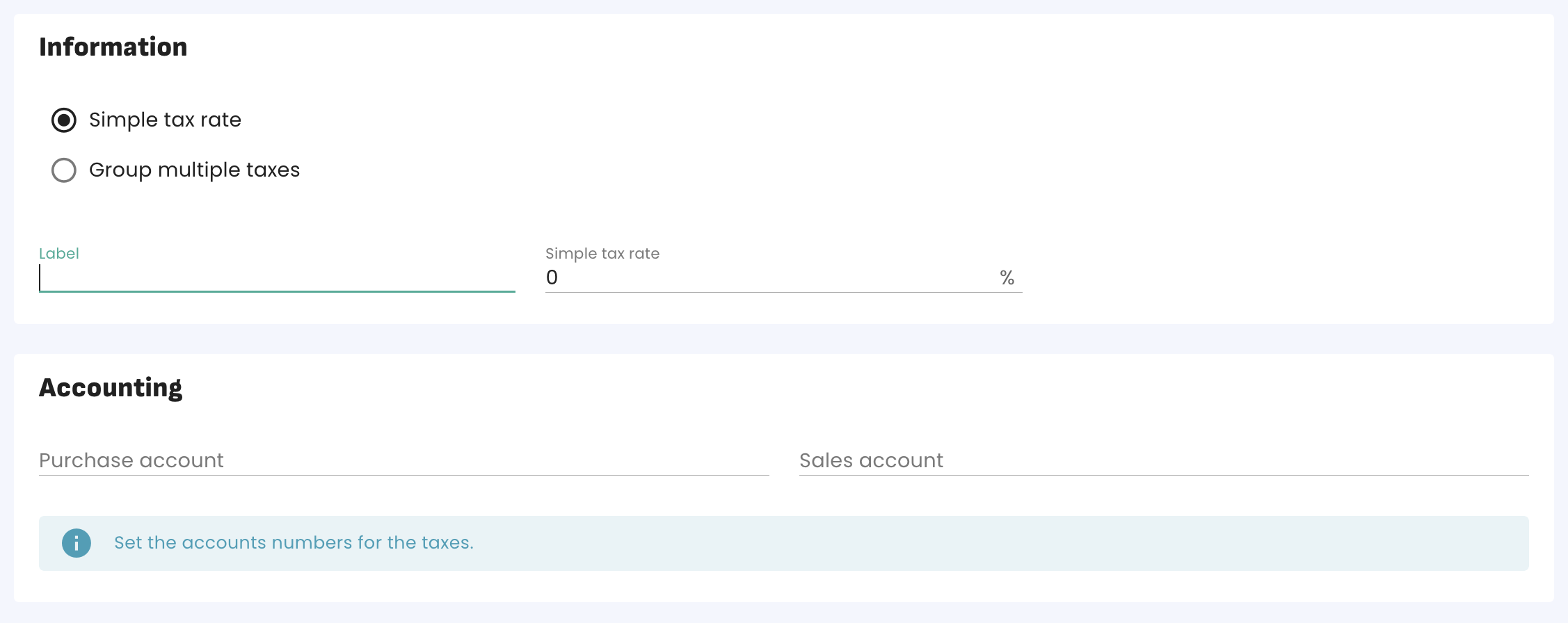 If you want to group multiple taxes into one, simply check 'Group multiple taxes' and select the taxes included in this group.