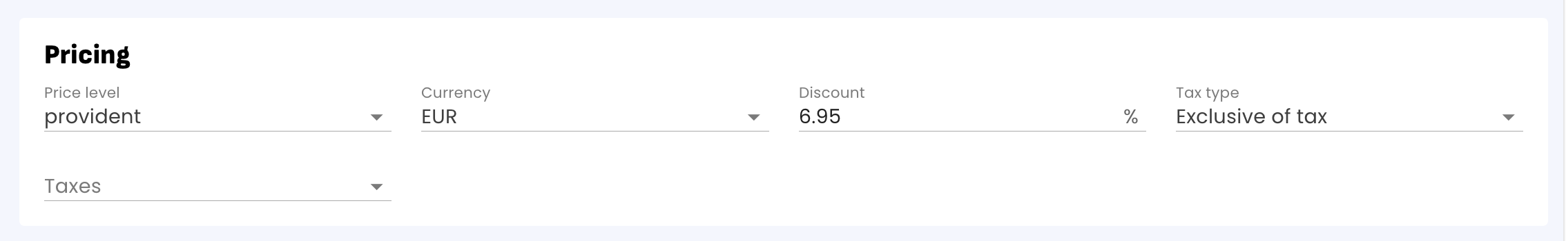 In most cases, default taxes are assigned to customers. You can also assign taxes to products, this can be necessary if the same tax rate doesn't apply to all the products in the same sale (Estimate, Sales order, Invoice). For example, in the same invoice, some products can be tax exempt, and others subject to a 20% tax rate. Setting up taxes in products is optional, but if you assign taxes to your products, this will be prioritized over your selection in the customer and company settings.