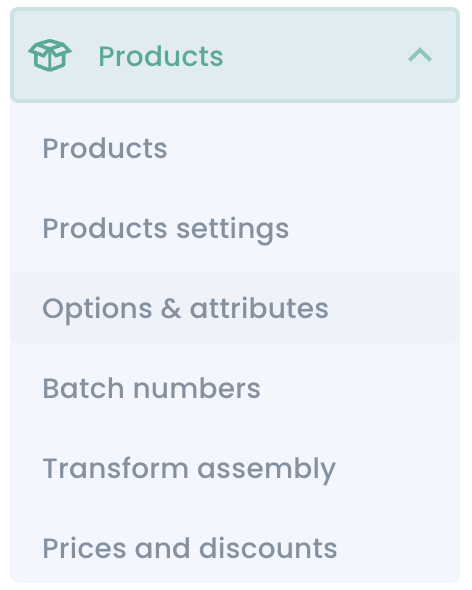 Options: for example, if the product is available in different colors as well as different sizes. Colors and sizes are options.