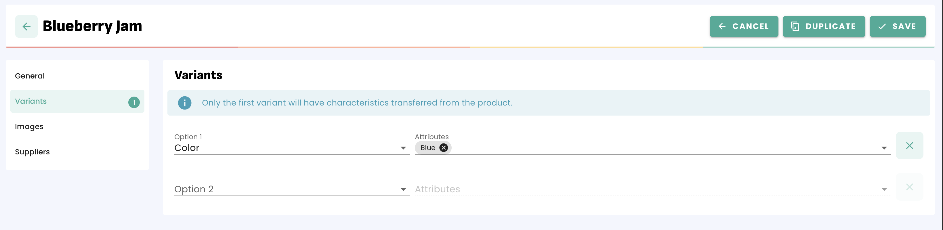 - Each variant has its own stock level and can also have its own SKU and prices.