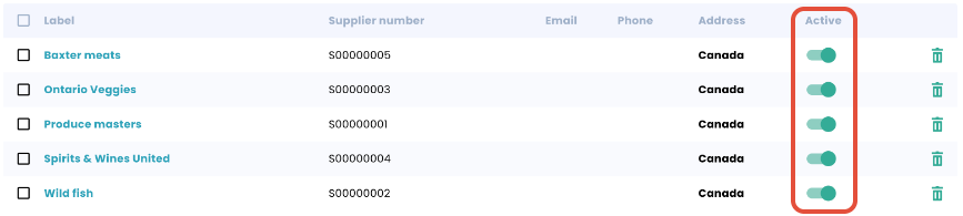 2. In the 'ACTIVE' column, place your mouse on the contact you wish to enable/disable and click on the following button: