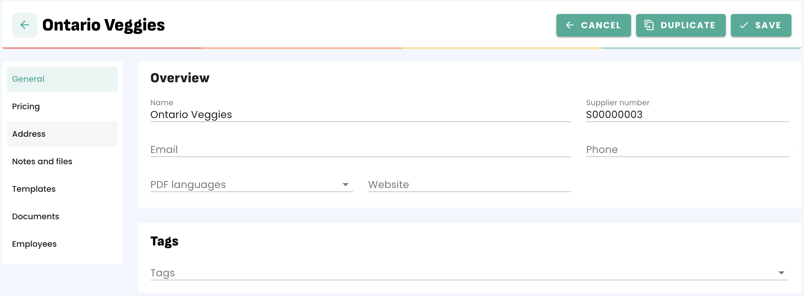 You can choose to set a default price level, tax, currency, discount rate and PDF language for your supplier.