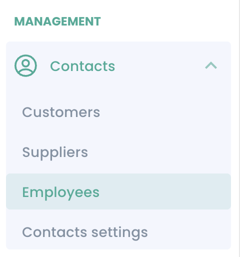 Employees are contacts attached to your customers or suppliers. You can search, create and export employees from the menu "Contacts > "Employees".