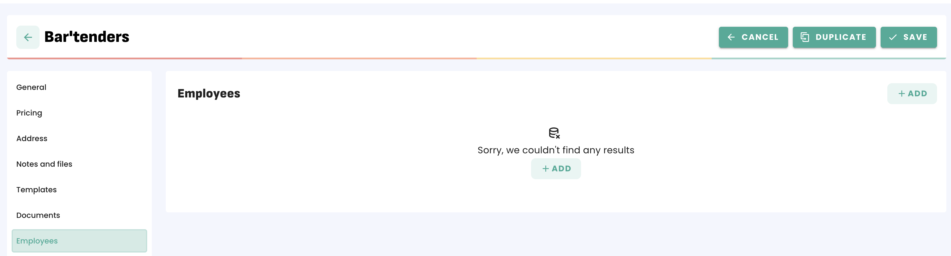 1. From the customer or supplier card, scroll down to the "Employees" section and click "ADD":