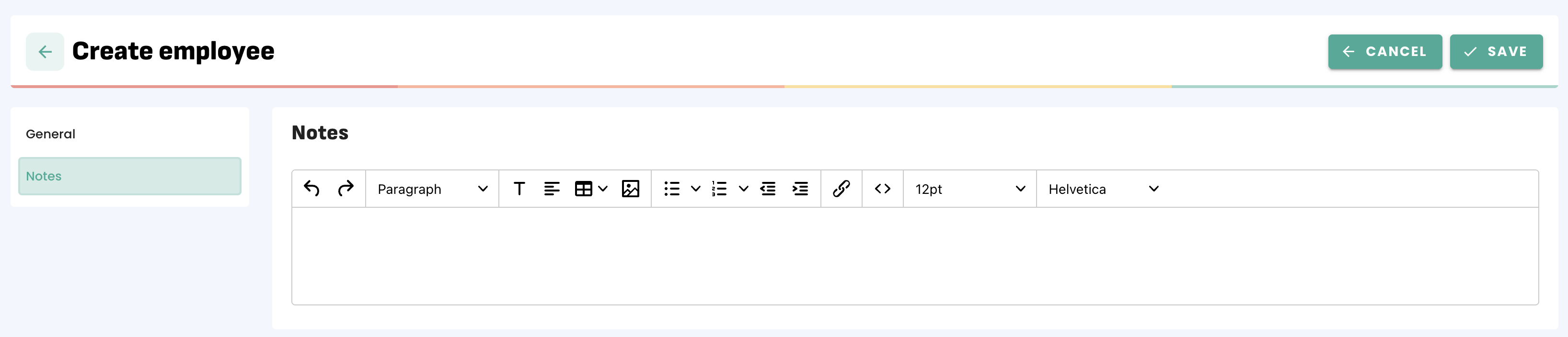 2. From the employees Menu click on '+ CREATE'.