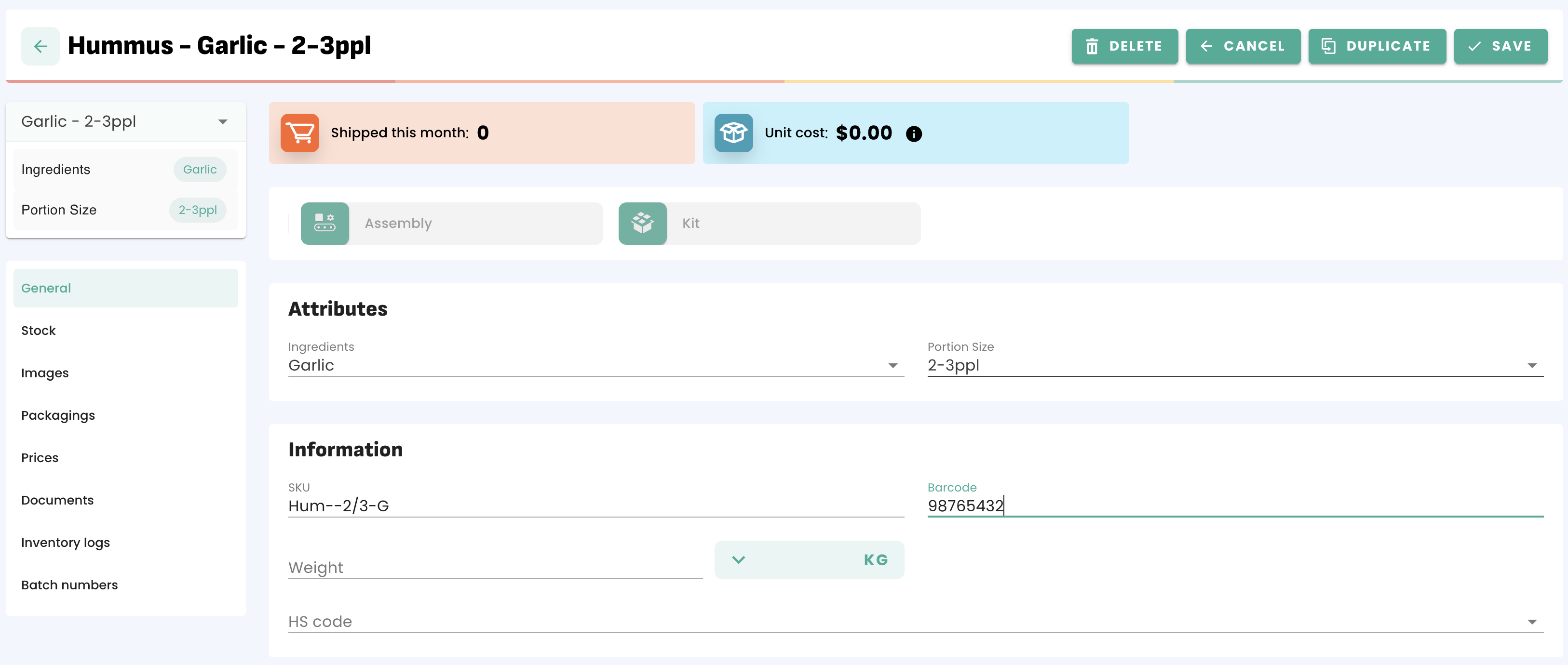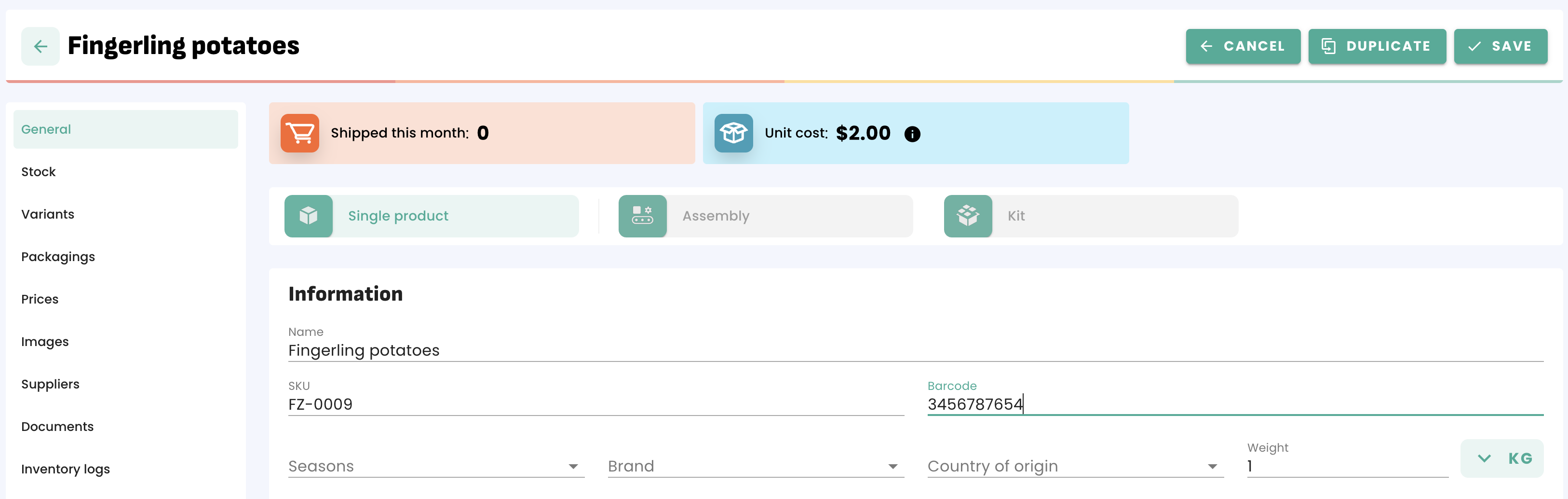 Click in the Barcode field and scan the barcode with your scanner, then save your product: