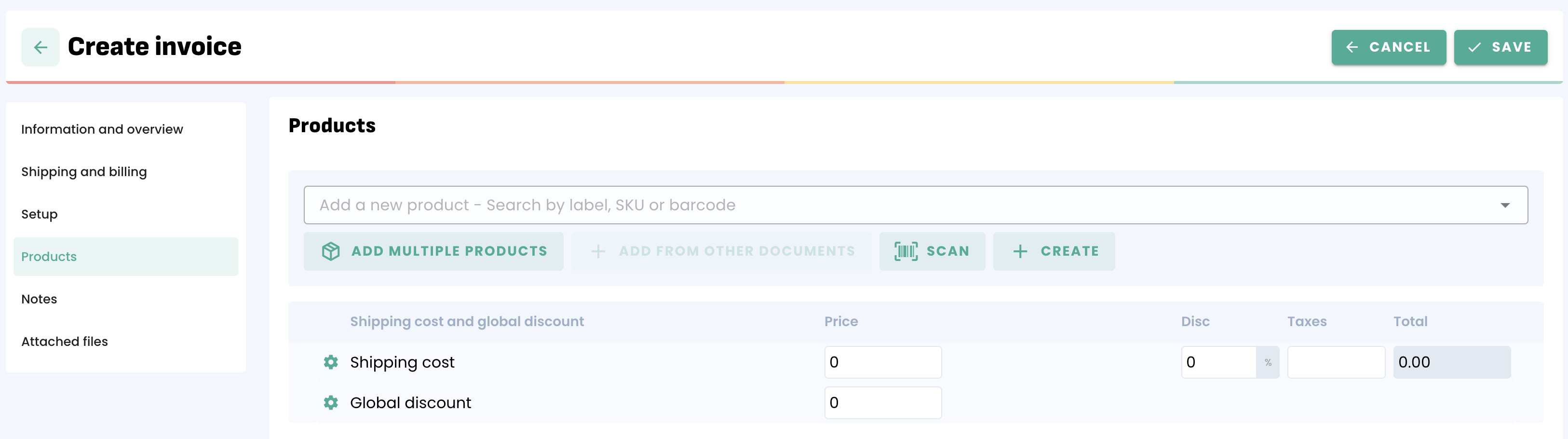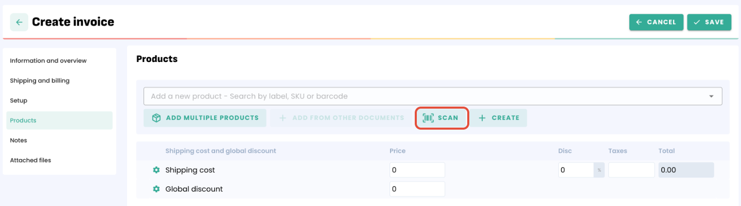 Step 1: While you are selecting products for your invoice, click on the "Scan" button: