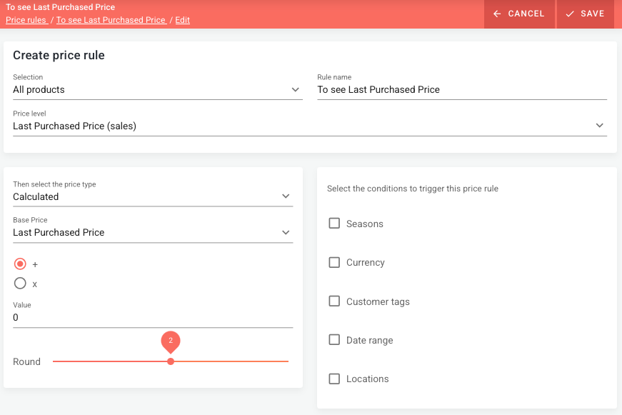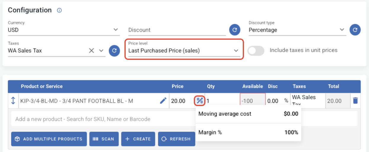 - Create a sales price level and name it "Last Purchased Price (sales)."