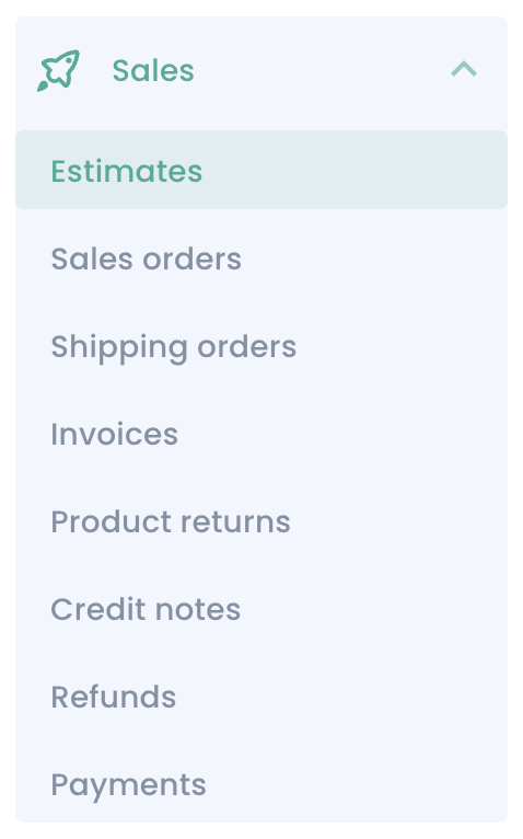 To create an Estimate, go to 'Sales' > 'Estimates':