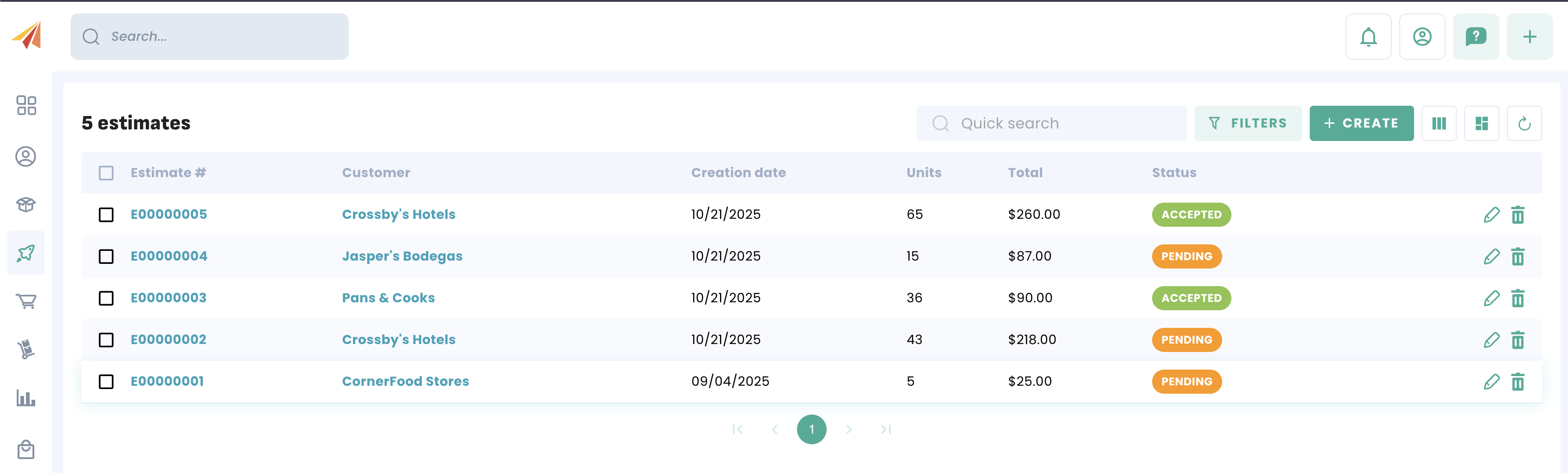 Once you click on the Estimate Menu, you will see the list of your Estimates: