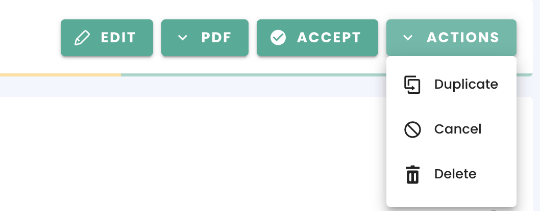 You can duplicate your Estimates should you need to make the same Estimate. Simply open any Estimate, click on the Actions button and 'Duplicate':