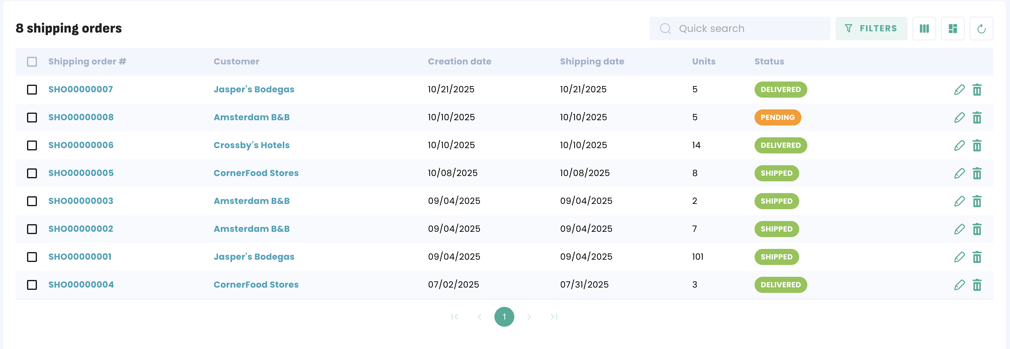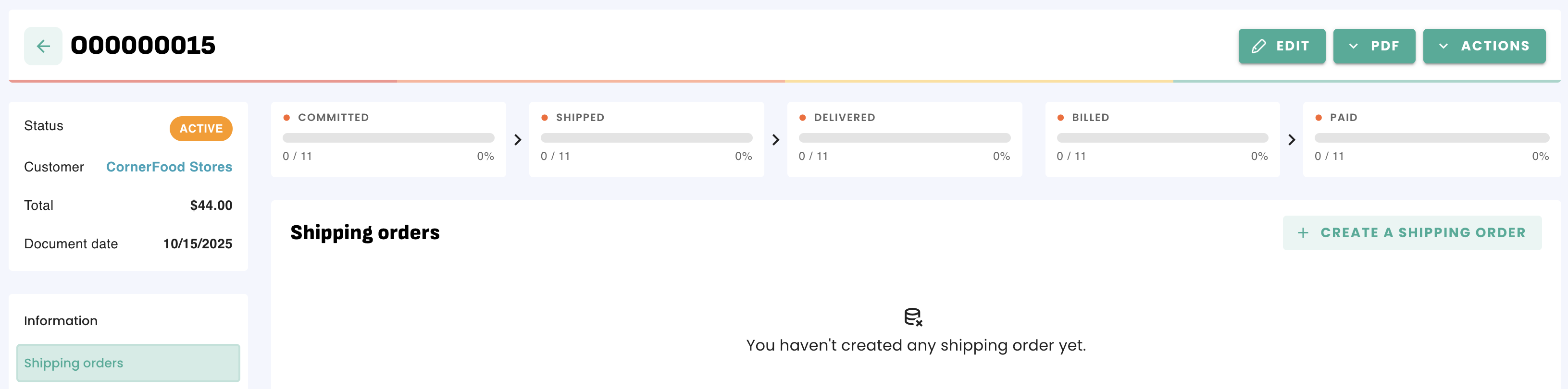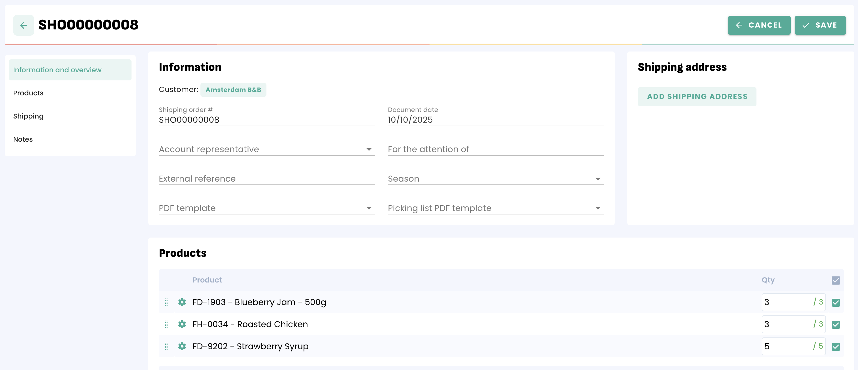 Erplain generates a Shipping Order with quantities matching the Sales Order: