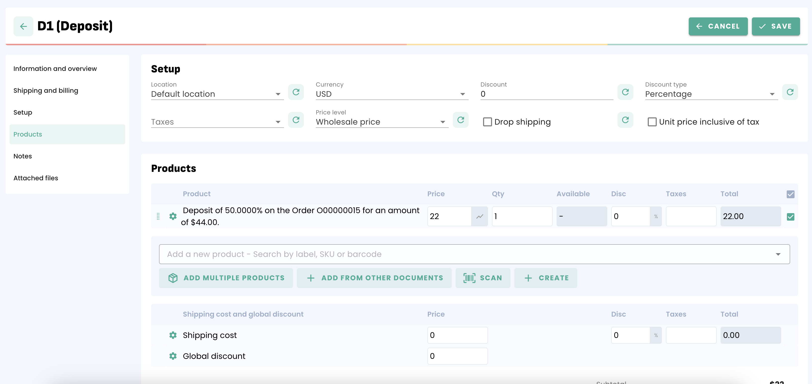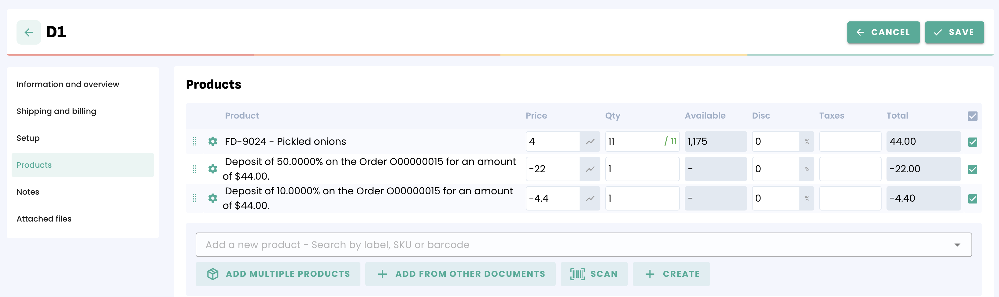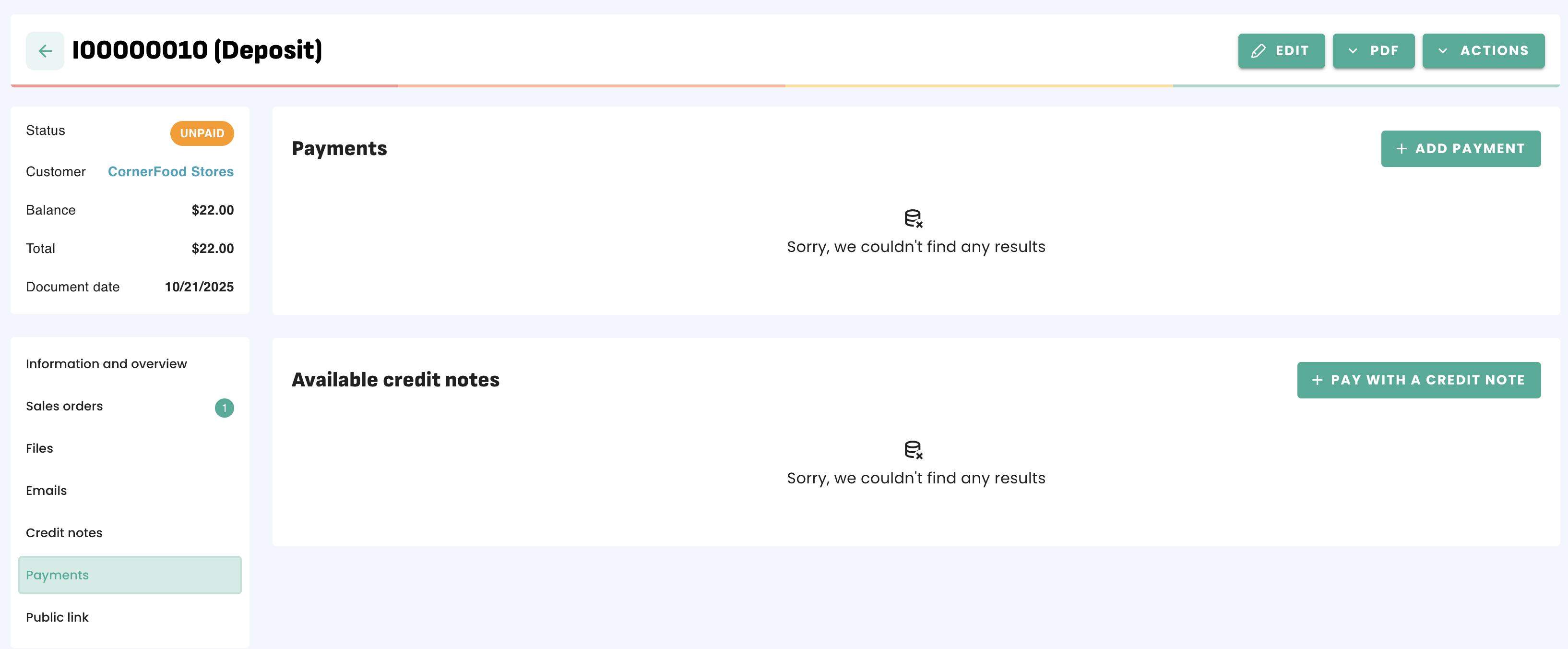 In some cases, you might require deposits (or advanced payments) from your customer after you have created an Estimate or a Sales order. You can create multiple deposits for the same transaction.