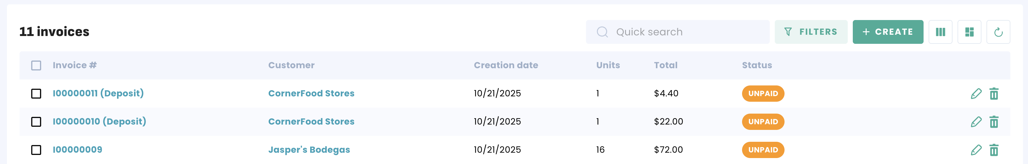 Once you are ready to invoice your customer, the deposits will be applied automatically as line items of the invoice: