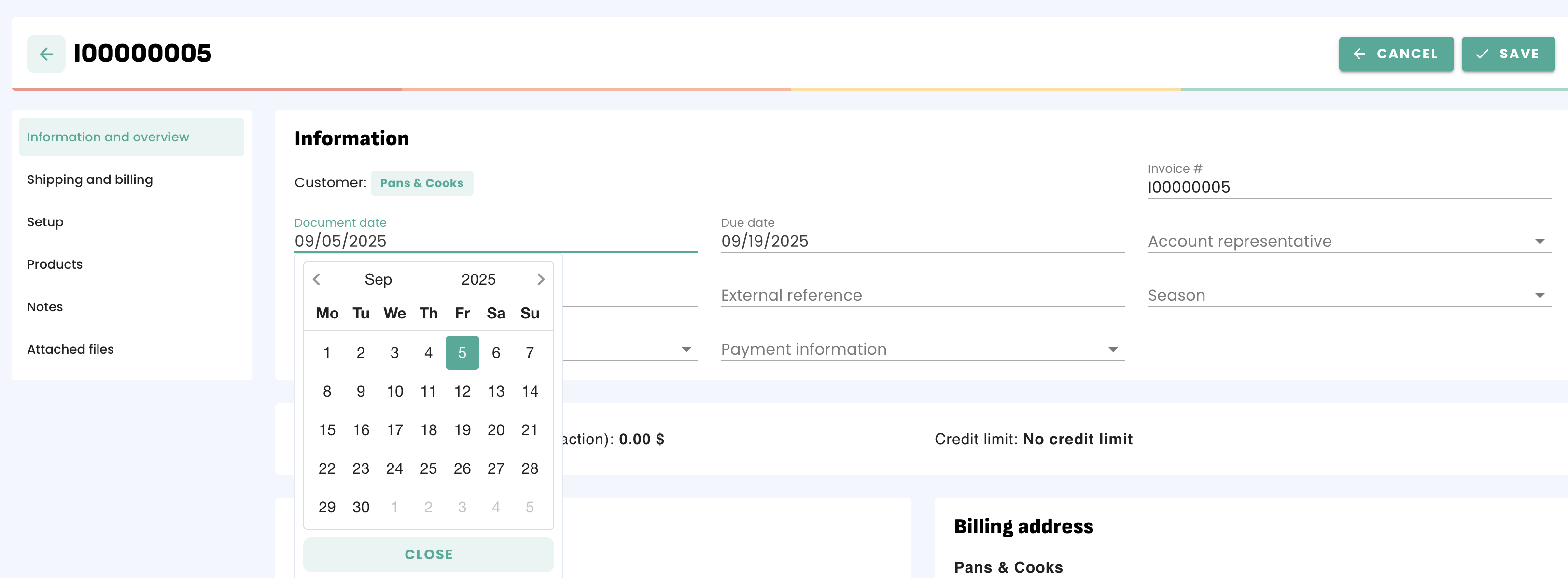 Note: This feature is not available within certain countries such as France due to fiscal law restrictions not allowing finalized invoices to be altered.