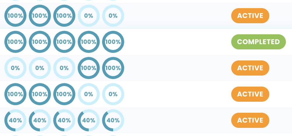 Shipping progress is registered in the first three percentage wheels of the progress column.