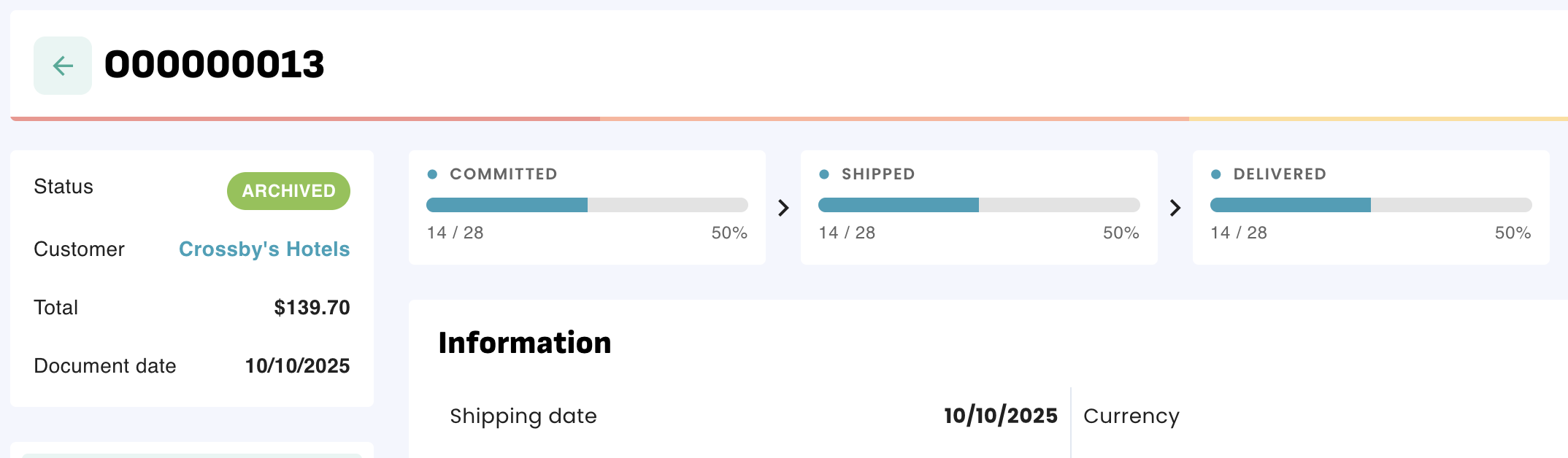 Once completed, it is possible to undo the completion and reactivate the Sales order or Purchase order.