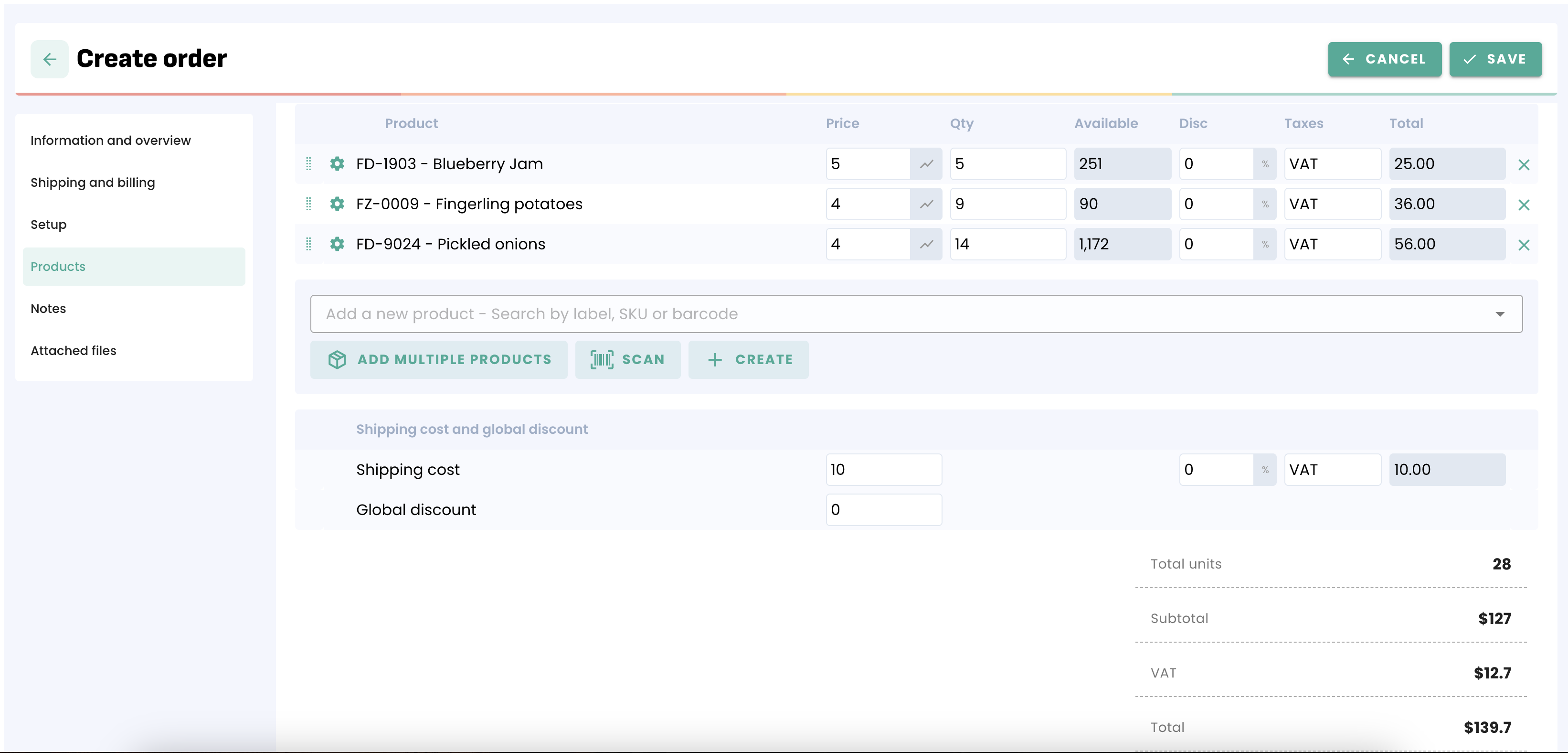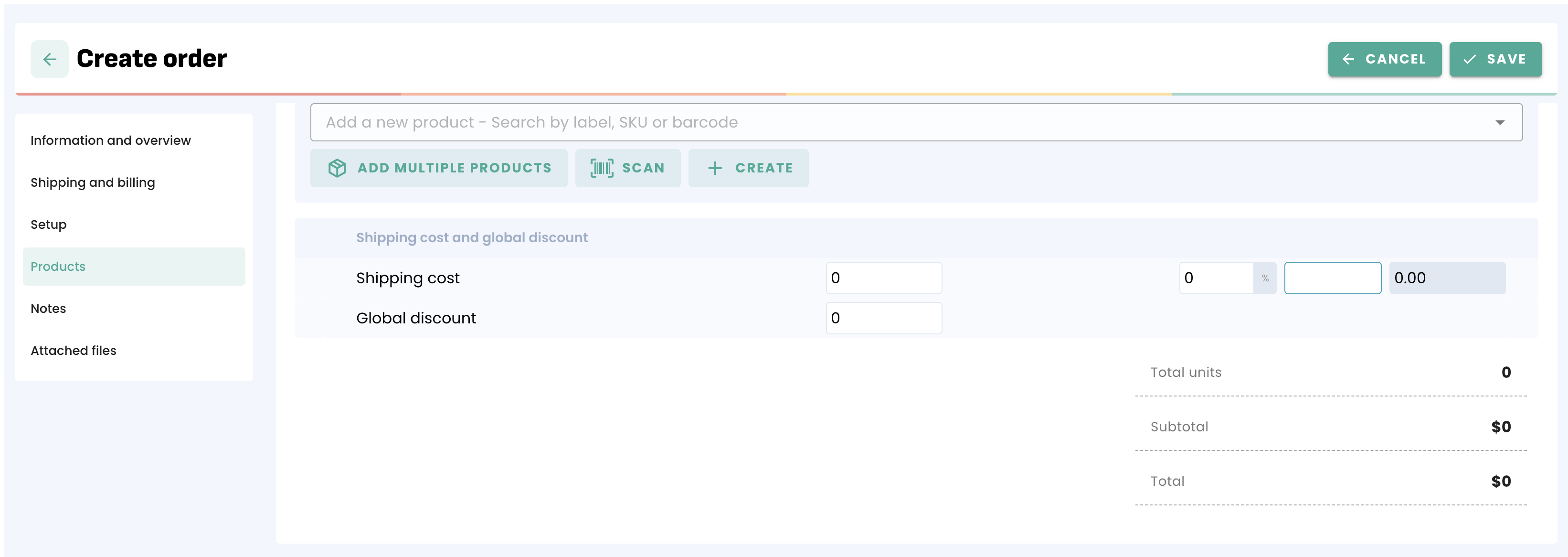 We can enter an amount or a percentage for the shipping cost that will be added later to the sales:
