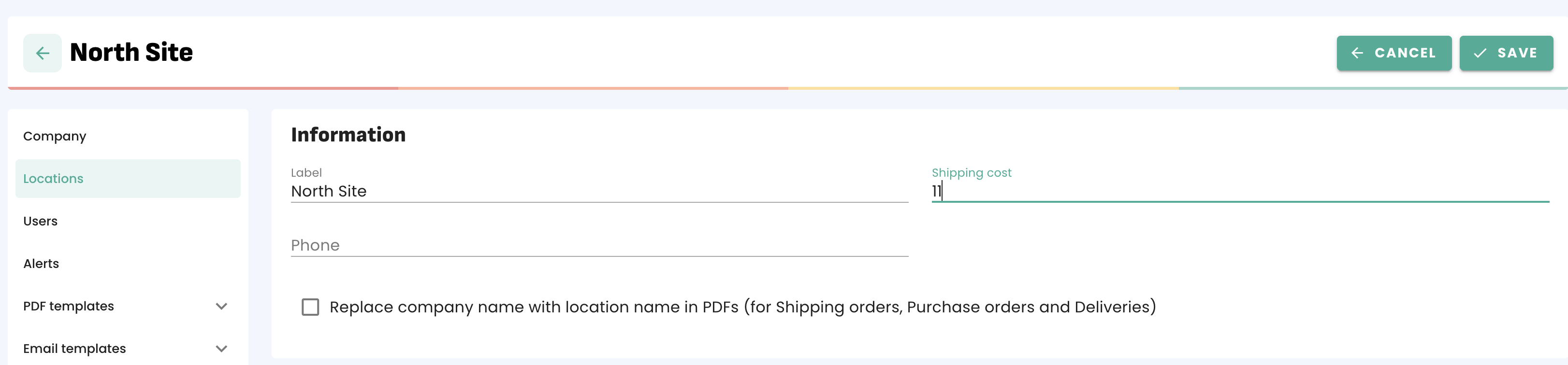 These shipping costs can also be configured by default for each of the locations in the settings: