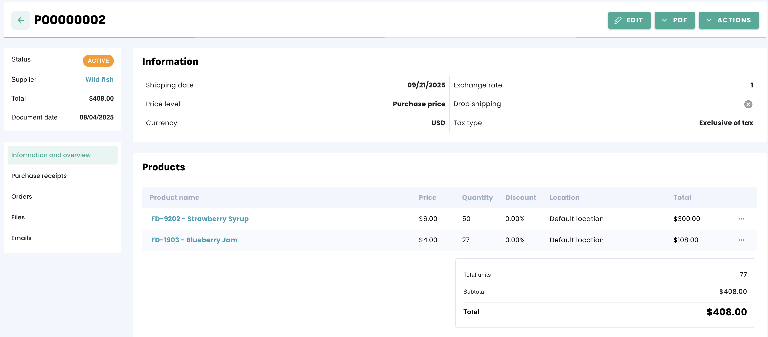 Erplain users can receive their restocking orders in partial shipments if they wish so, just as multiple shipping orders can be created when a client order is delivered in several shipments. This can be useful if a supplier is struggling and cannot send the order in one shipment or if you expect a staggered delivery for your order.