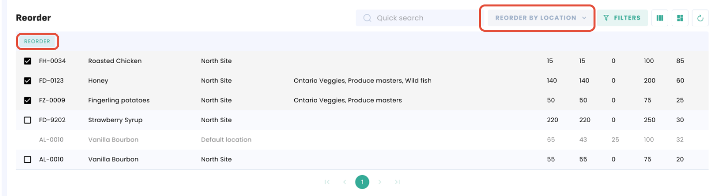 IMPORTANT: Reordering can only be done for one location at a time. If you have products in multiples location. You will need to repeat this process for each location.