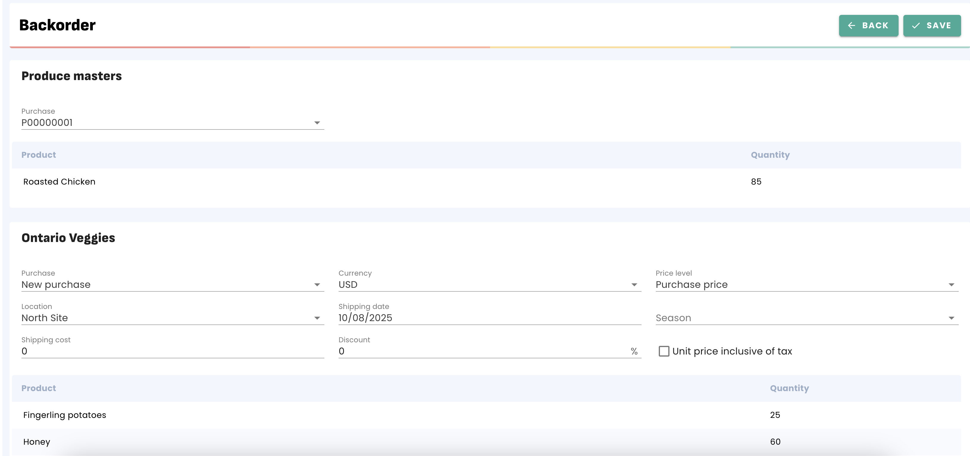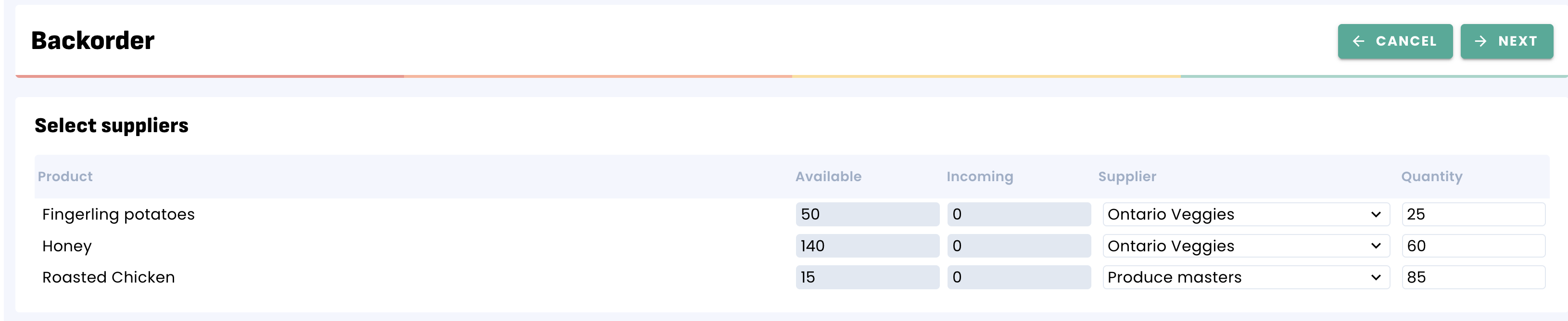 Update quantities and suppliers if needed and click 'Next' when you are done.