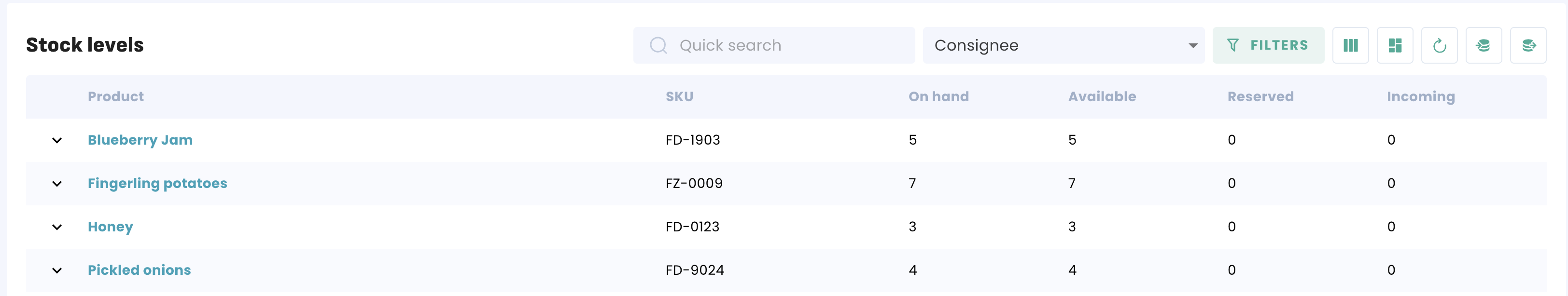 You can also zero in on a specific location, in that case your consignee. Your inventory for this location should now display: