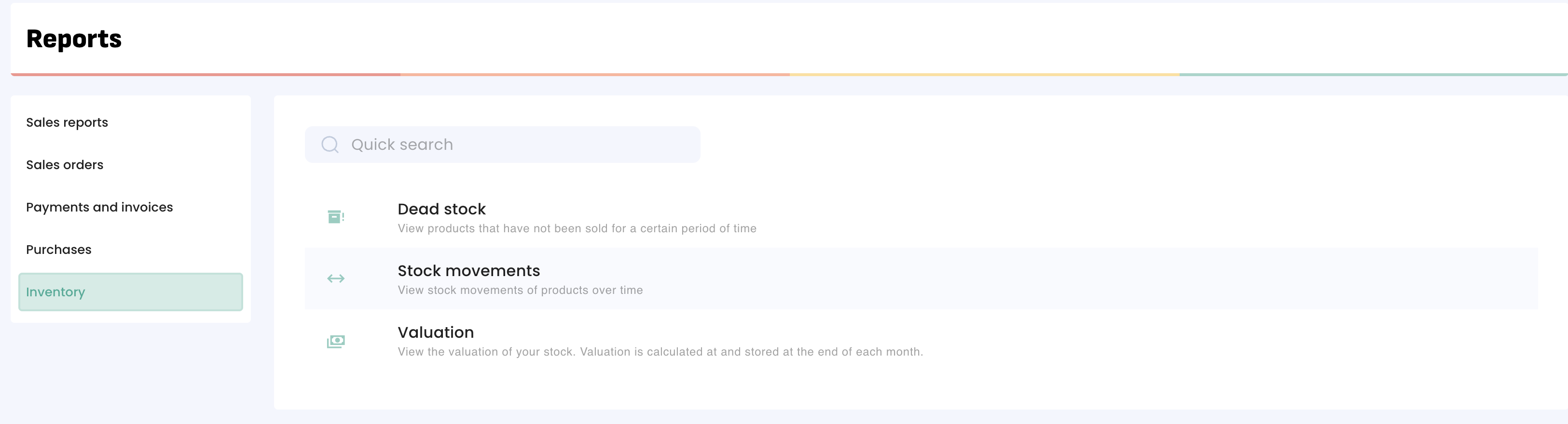 Once your costs are tracked in Erplain, you can check your inventory valuation in the “Reports” > “Inventory” menu. You will see all your products with their current valuation, and you can also select a past date using the “valuation date” field.