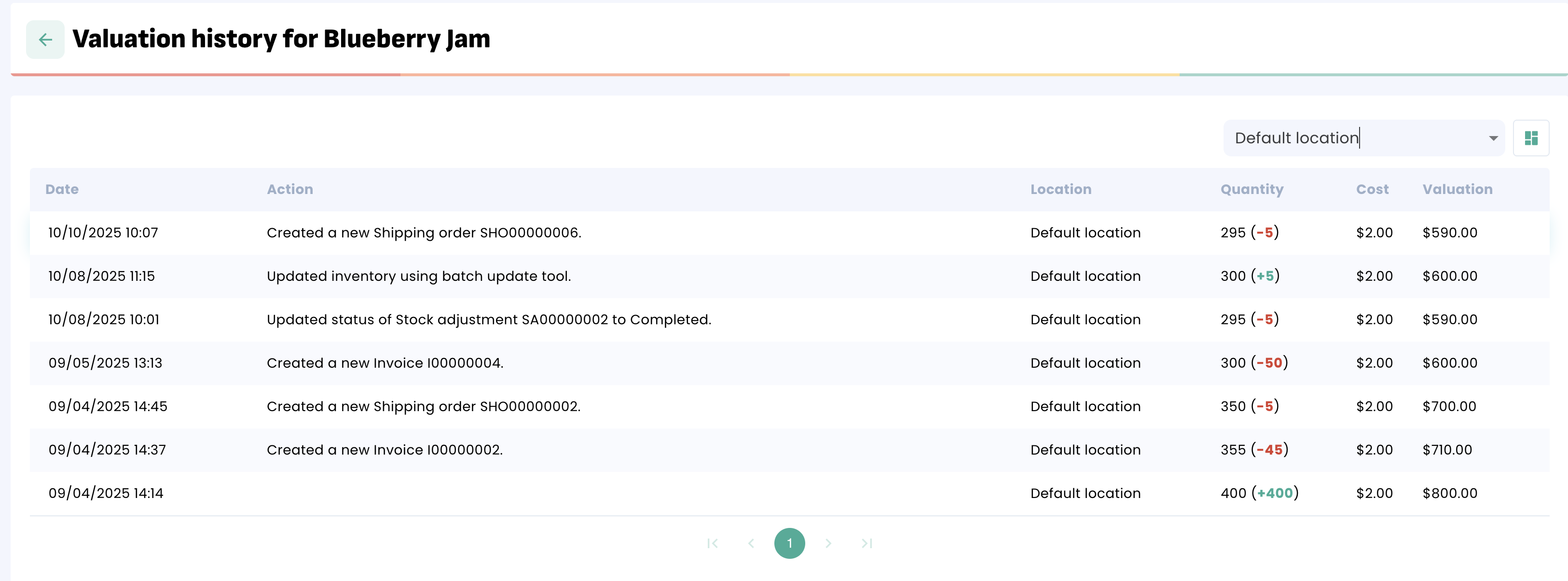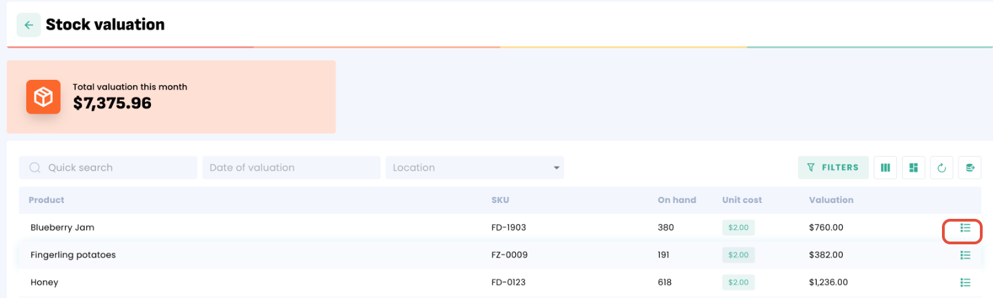 To view all transactions that affected the valuation of a product, click the “details” icon.