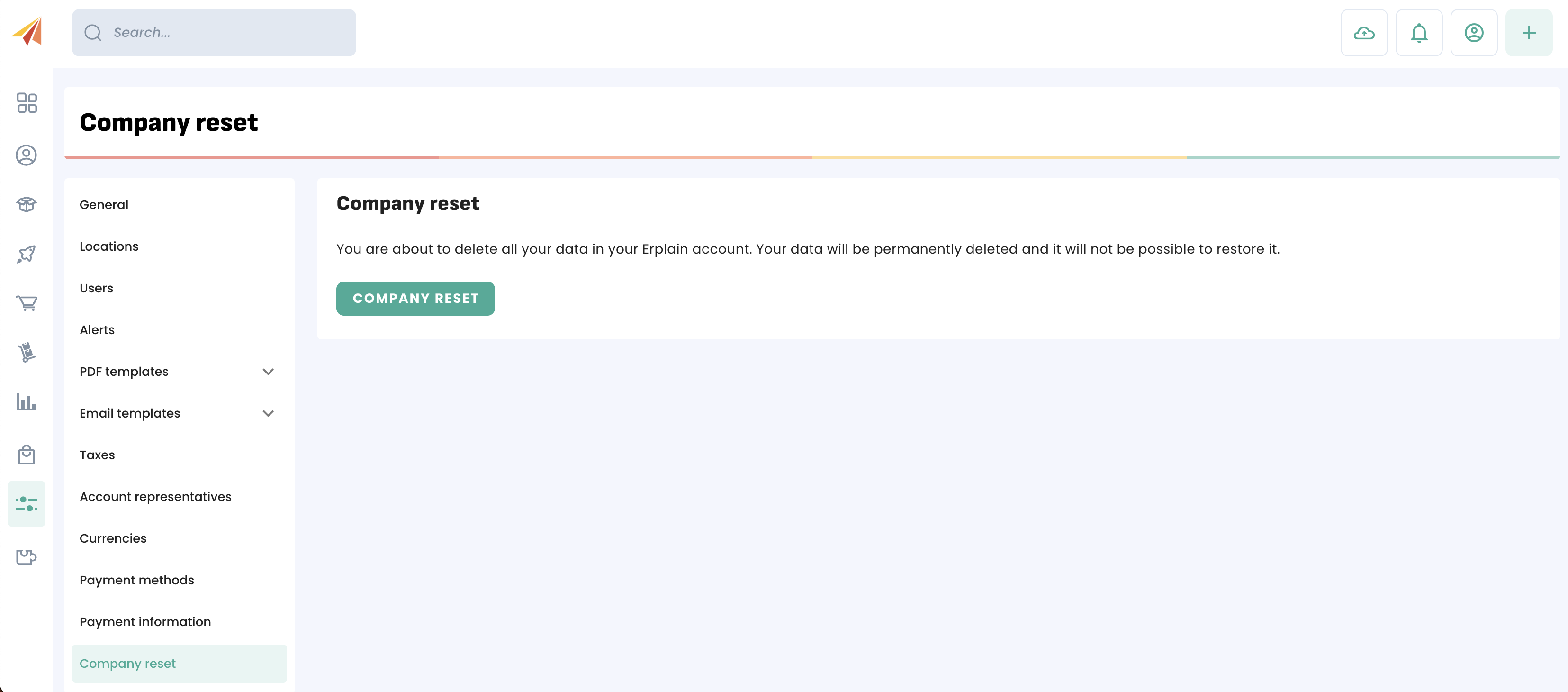 If you want to start fresh or delete the sample information in your account, you can delete the data in your account: Products, Customers, Suppliers and all Transactions by going to the Settings menu > Company reset: