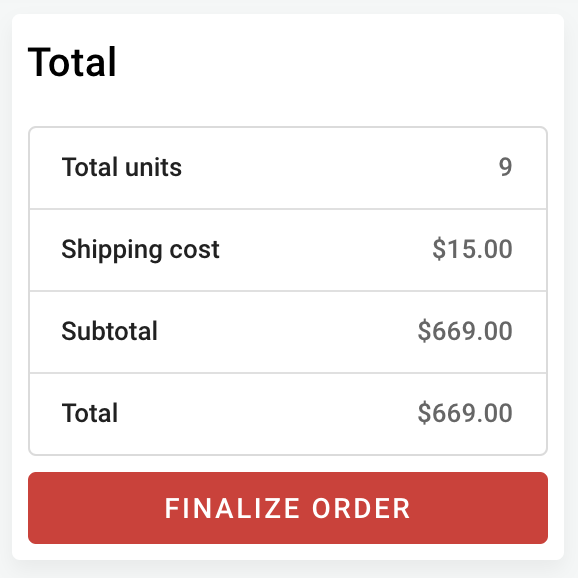 Review the order, add some notes, select the shipping address and click on "Finalize order" to save the order.
