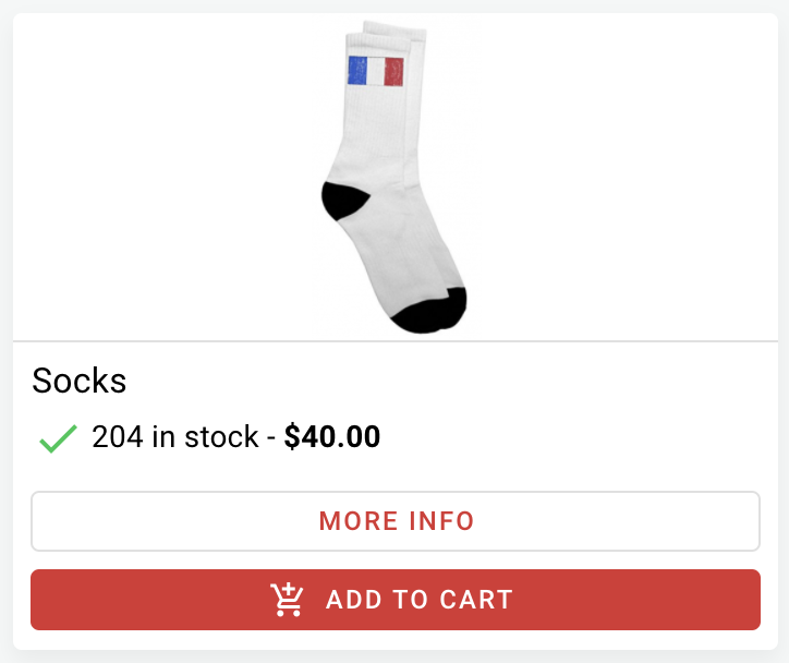 Click on "More Info" to have more details about a product and Click "Add to Cart" to add this product to your order: