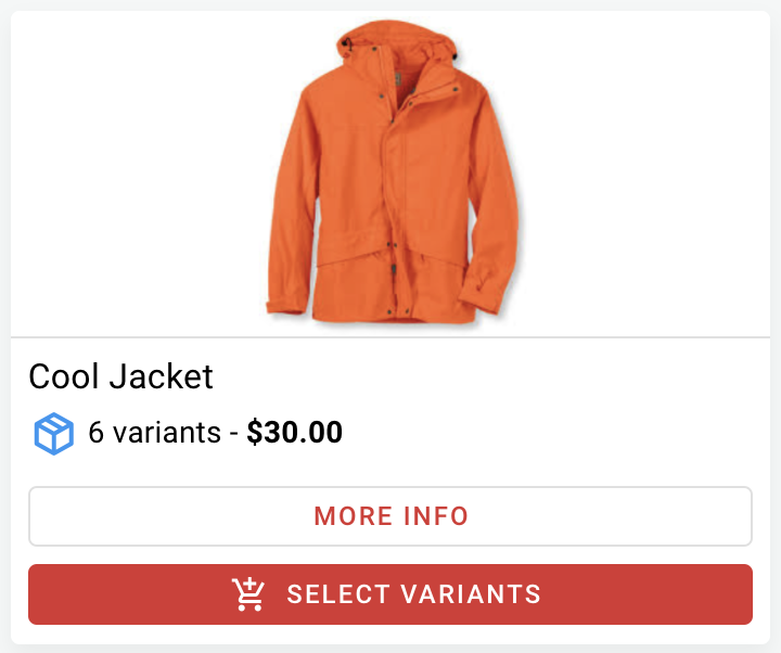 For Products with Variants, click on "Select Variants" to select the variants you wish to order: