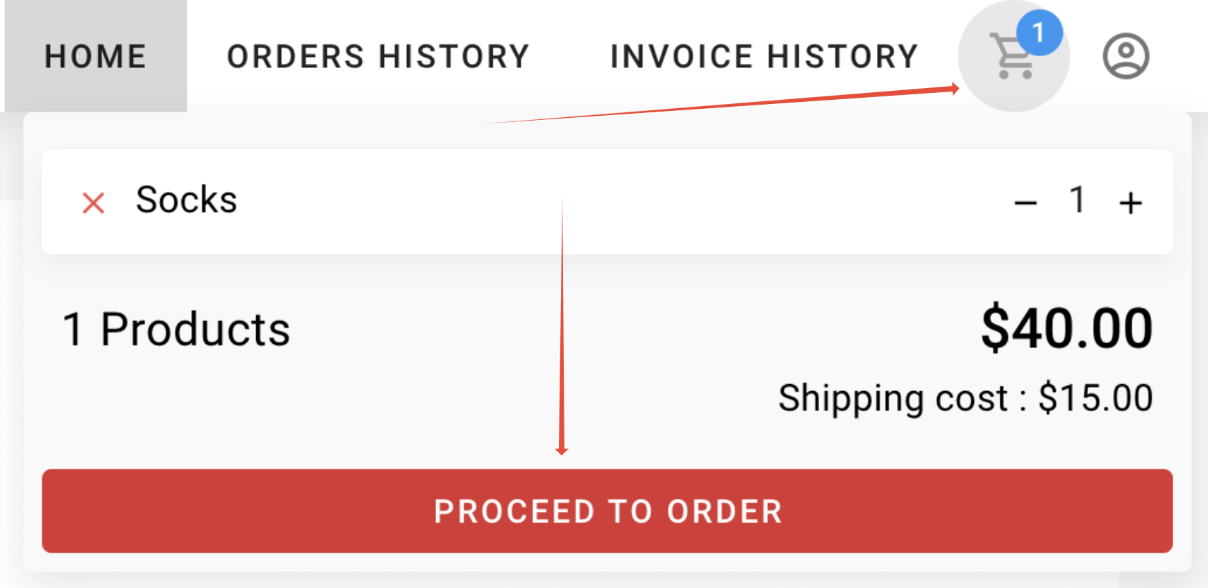 Once you connect to the store, you can place orders by selecting products, and then clicking on the shopping cart and Proceed to Order.