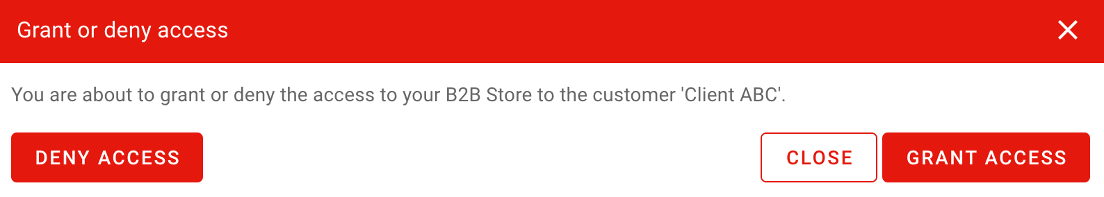 To accept or reject the request, go to the B2B Store > Customers menu and click on 'Show pending access requests':
