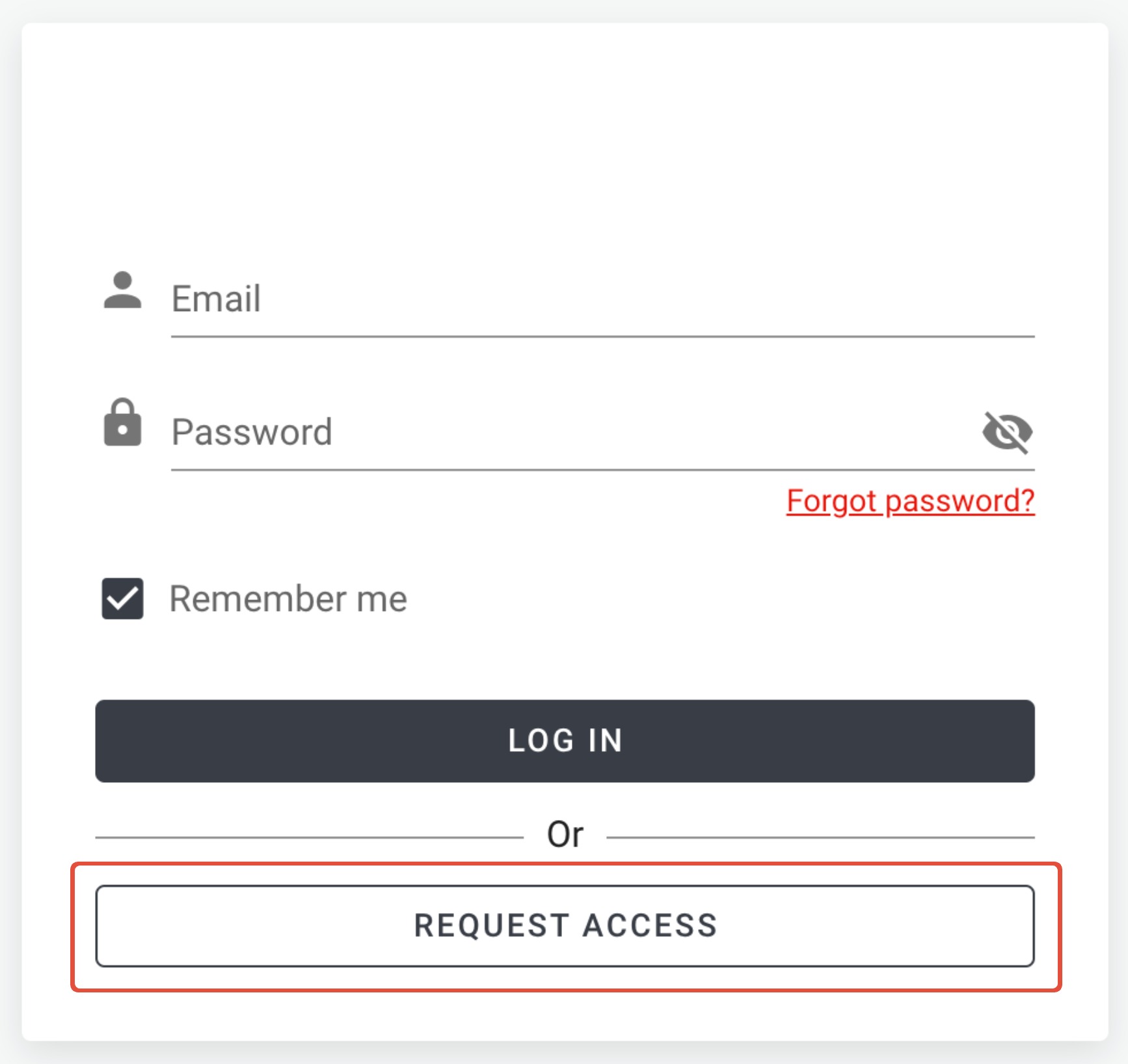 If a customer clicks on the "Request access" button, they will be prompted for their email address and company name.
