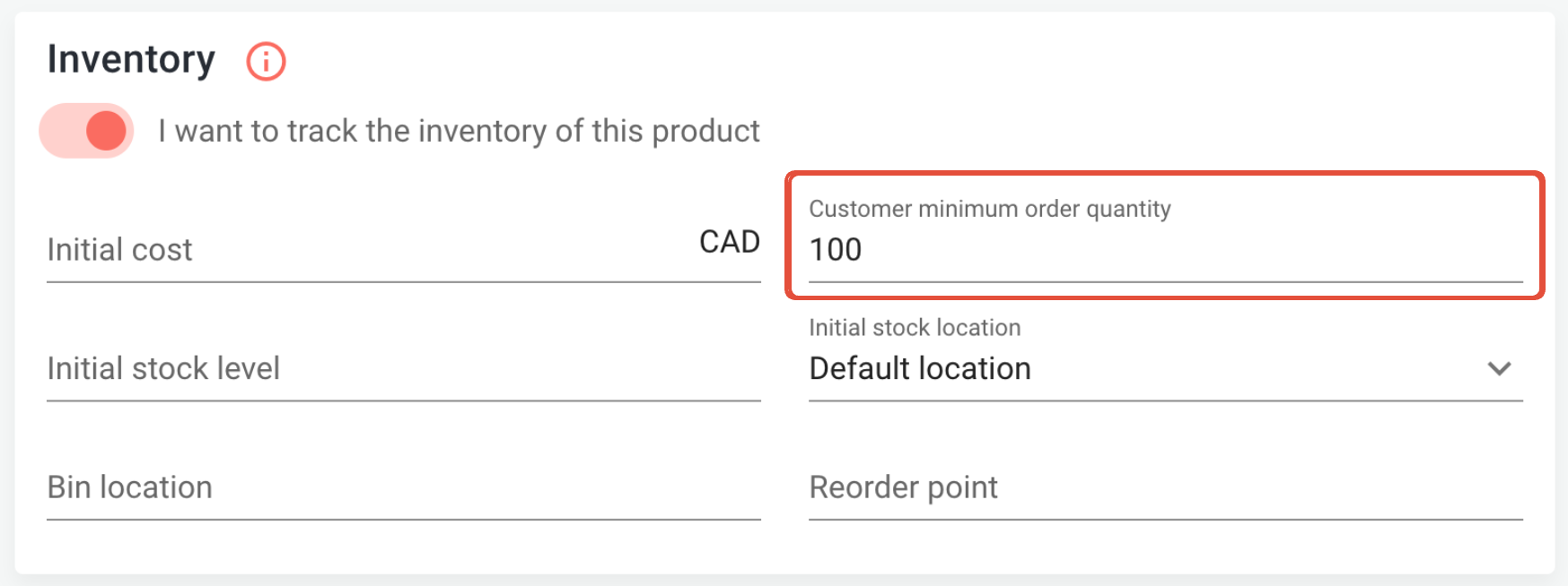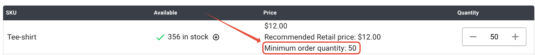 The minimum order quantity of a product will be displayed in the product sheet and it will not be possible to add the product to the cart below the minimum quantity.