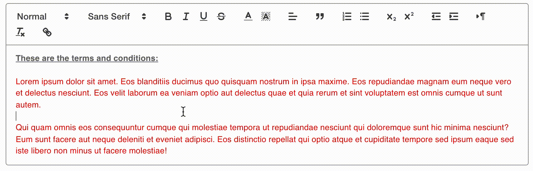 Some hidden characters in your Terms and Conditions are not accepted by QuickBooks. Clear formatting and delete all line breaks. Then start formatting again from Erplain.