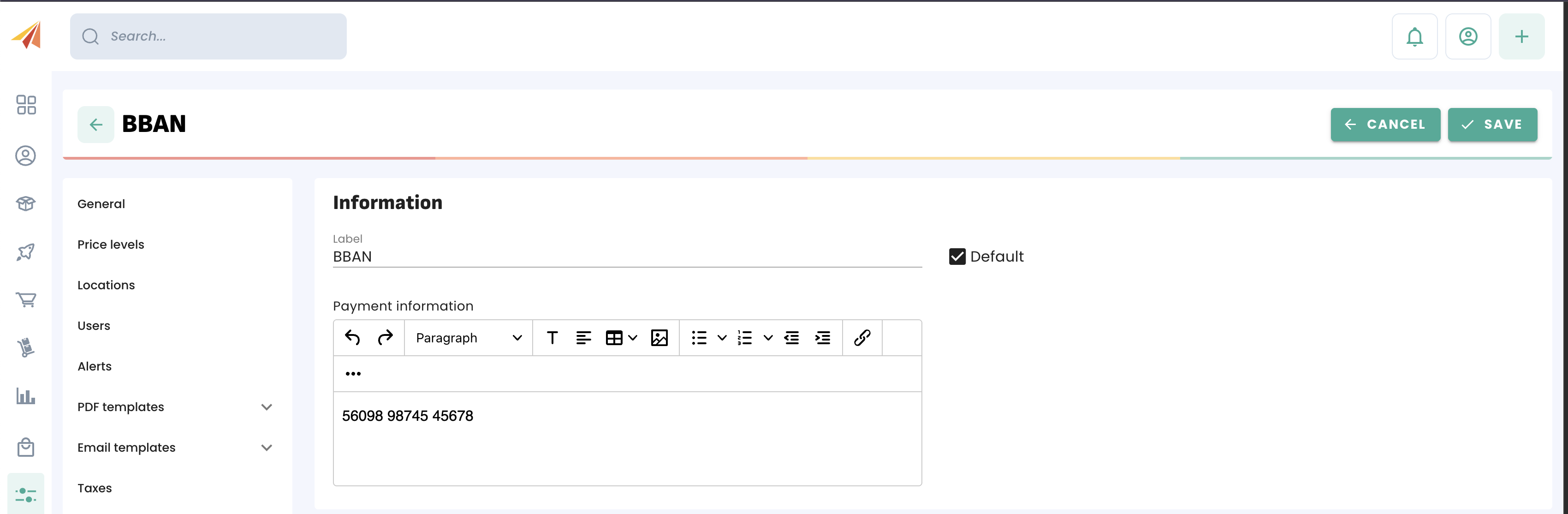 This allows you to select a number of things that can appear on your documents and help your customer through their payment process. You can include things such as your bank details or a BBAN.