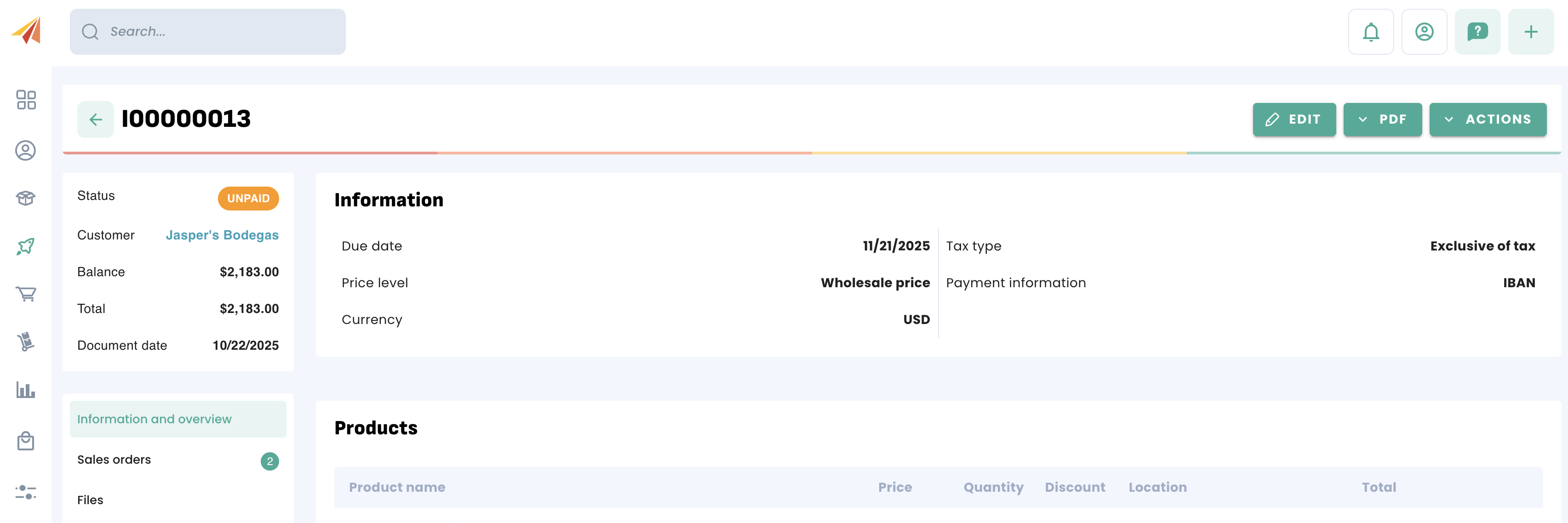 Once the invoice is saved, you can find the sales orders that contributed to its creation in the “Sales Orders” section on the left side of your screen.